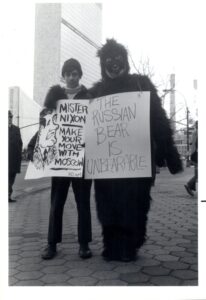 Half a century ago, in 1972, the Student Struggle for Soviet Jewry (SSSJ) organized “From Potma to Purim Vigil and Fast,” a demonstration on behalf of  Sylva Zalmanson and other prisoners of conscience in Potma, a notorious Russian labor camp. What were the prisoners’ crimes? They had expressed the desire to leave the Soviet Union and move to Israel.The two-day vigil and fast took place in New York on February 27 and 28, in proximity to the Fast of Esther and Purim. The students voiced the hope that their actions would spur President Nixon to intercede with Moscow for freedom for Soviet Jews, as Queen Esther’s fast before Purim helped her plead with King Achashverosh to avert Haman’s evil decree to destroy the Jews.A description of the event in a Student Struggle for Soviet Jewry press release explained: “The targets of the student fasters are both the United Nations and President Nixon, represented by the United States Mission to the U.N., a block away. Students wearing Nixon masks and bear suits will conduct a guerrilla theater, and letters taken from the USSR appealing to the U.N. and President Nixon for intervention will be read, interspersed with religious study sessions.”Esther’s plea to the King of Persia succeeded and Jews survived to celebrate Purim until today. The Student Struggle for Soviet Jewry’s demonstrations, along with many other factors and actors, helped vanquish the Soviet Union. Jews were free to emigrate. The Soviet Union dissolved and in its stead democratic regimes emerged in much of Eastern Europe in 1991.The Russian bear’s thirty-year long hibernation is over, and the bear is hungry. Let us hope that the Russian bear, the dov [in Hebrew], will be transformed into the dove of peace and the world will be able celebrate a post-Putin Purim in 2022 and beyond.Posted by Shulamith Z. Berger